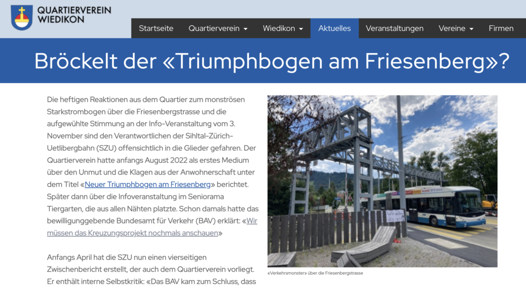 Bröckelt der «Triumphbogen am Friesenberg»? Ein interessanter Artikel des Quartiervereins Wiedikon https://www.quartierverein-wiedikon.ch/aktuelles/485.html